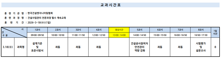 | ±³À°ÀÏÁ¤ | 2026-03-18 ~ 2026-03-18 | |