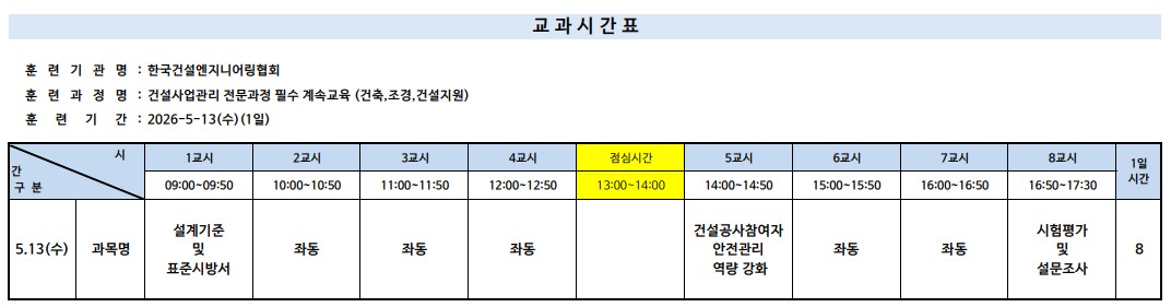 | ±³À°ÀÏÁ¤ | 2026-05-13 ~ 2026-05-13 | |