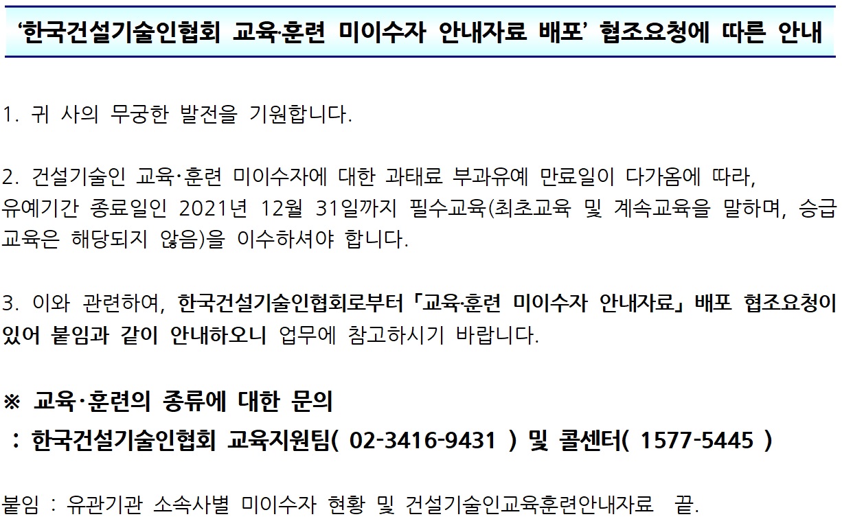 Çѱ¹°Ç¼³¿£Áö´Ï¾î¸µÇùȸ¿¡¼ ¾Ë·Áµå¸³´Ï´Ù.| ¡®Çѱ¹°Ç¼³±â¼úÀÎÇùȸ ±³À°․ÈÆ·Ã ¹ÌÀ̼öÀÚ ¾È³»ÀÚ·á ¹èÆ÷¡¯ ÇùÁ¶¿äû¿¡ µû¸¥ ¾È³» |