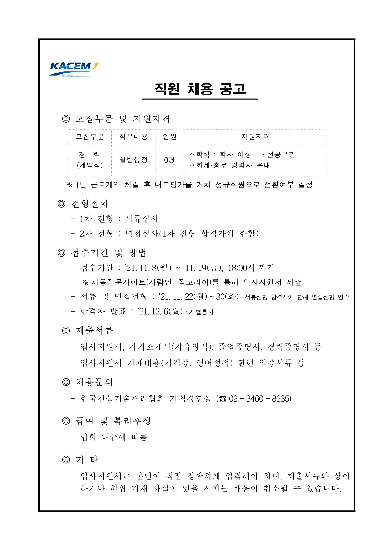 Çѱ¹°Ç¼³¿£Áö´Ï¾î¸µÇùȸ¿¡¼ ¾Ë·Áµå¸³´Ï´Ù.| 2021³âµµ Çùȸ Á÷¿ø ä¿ë °ø°í(°æ·Â) |