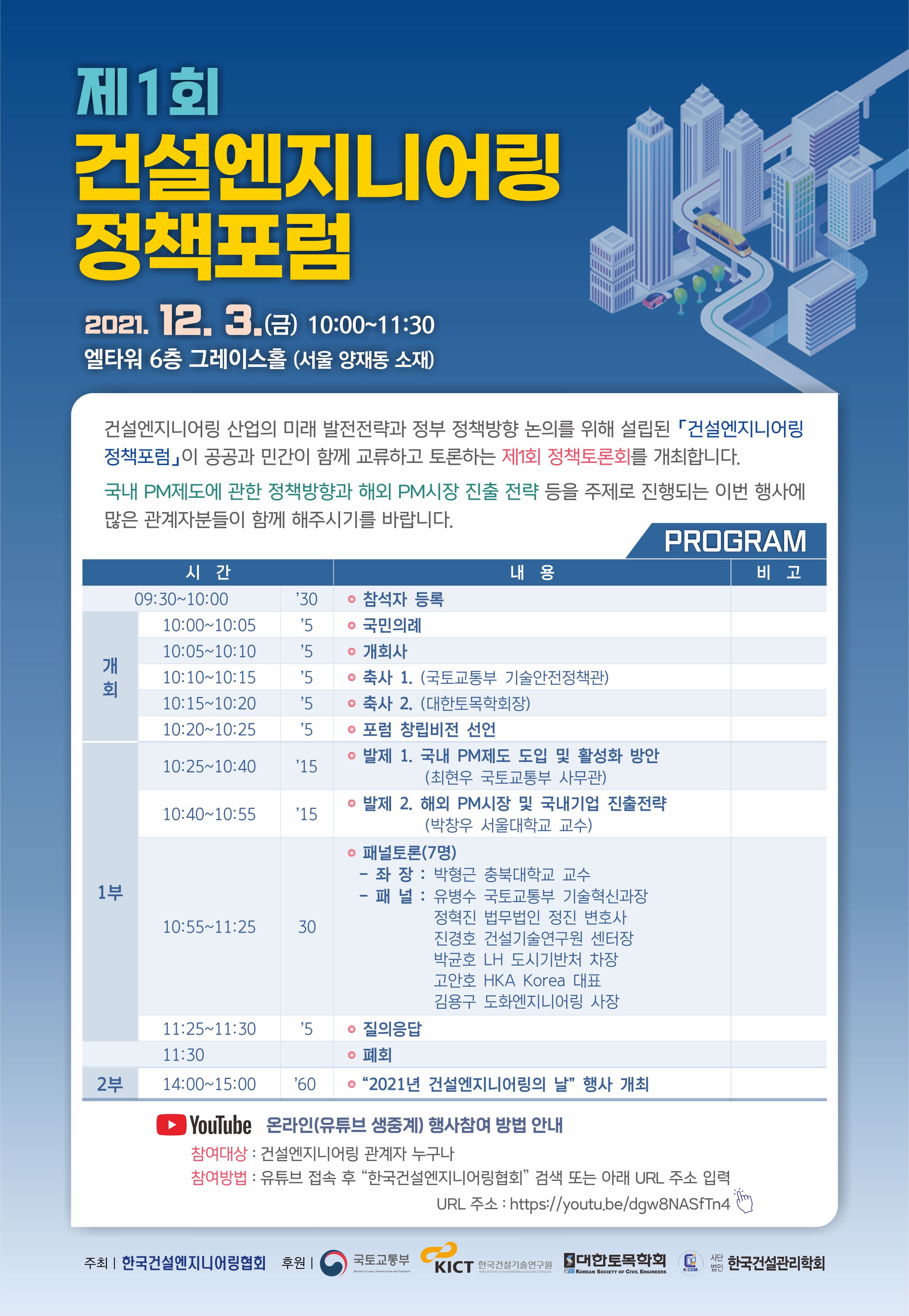 Çѱ¹°Ç¼³¿£Áö´Ï¾î¸µÇùȸ¿¡¼ ¾Ë·Áµå¸³´Ï´Ù.| Á¦1ȸ °Ç¼³¿£Áö´Ï¾î¸µ Á¤Ã¥Æ÷·³ °³ÃÖ ¹× ¿Â¶óÀÎ Âü¿©¹æ¹ý ¾È³» |