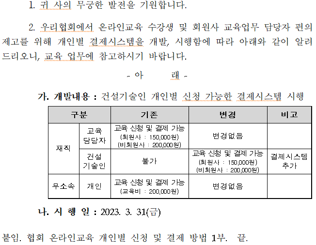 Çѱ¹°Ç¼³¿£Áö´Ï¾î¸µÇùȸ¿¡¼ ¾Ë·Áµå¸³´Ï´Ù.| Çùȸ ¿Â¶óÀα³À°, °³Àκ° °áÁ¦ ½Ã½ºÅÛ ½ÃÇà ¾Ë¸² |