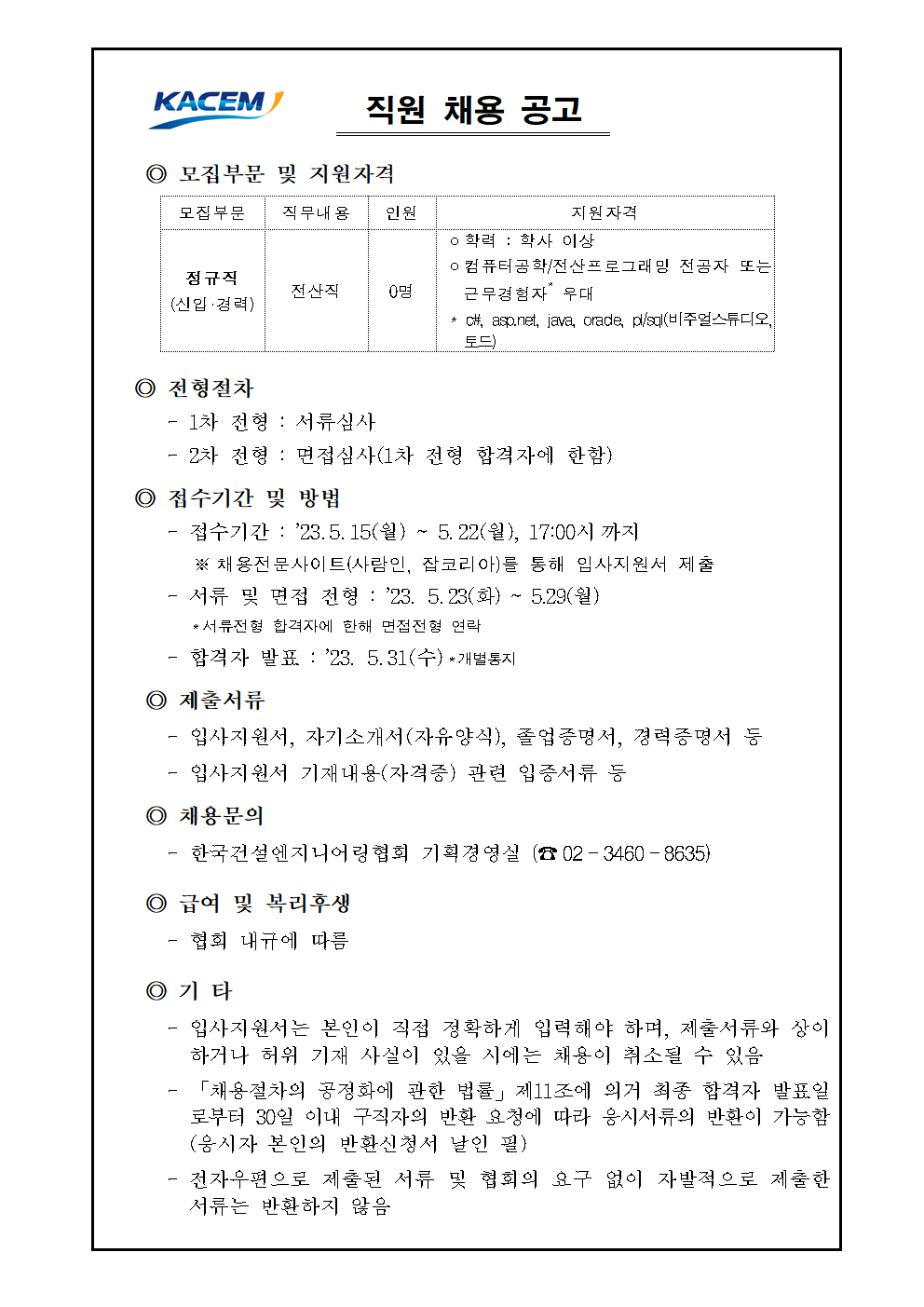 Çѱ¹°Ç¼³¿£Áö´Ï¾î¸µÇùȸ¿¡¼ ¾Ë·Áµå¸³´Ï´Ù.| 2023³âµµ Çùȸ Á÷¿ø ä¿ë °ø°í(Á¤±ÔÁ÷) |