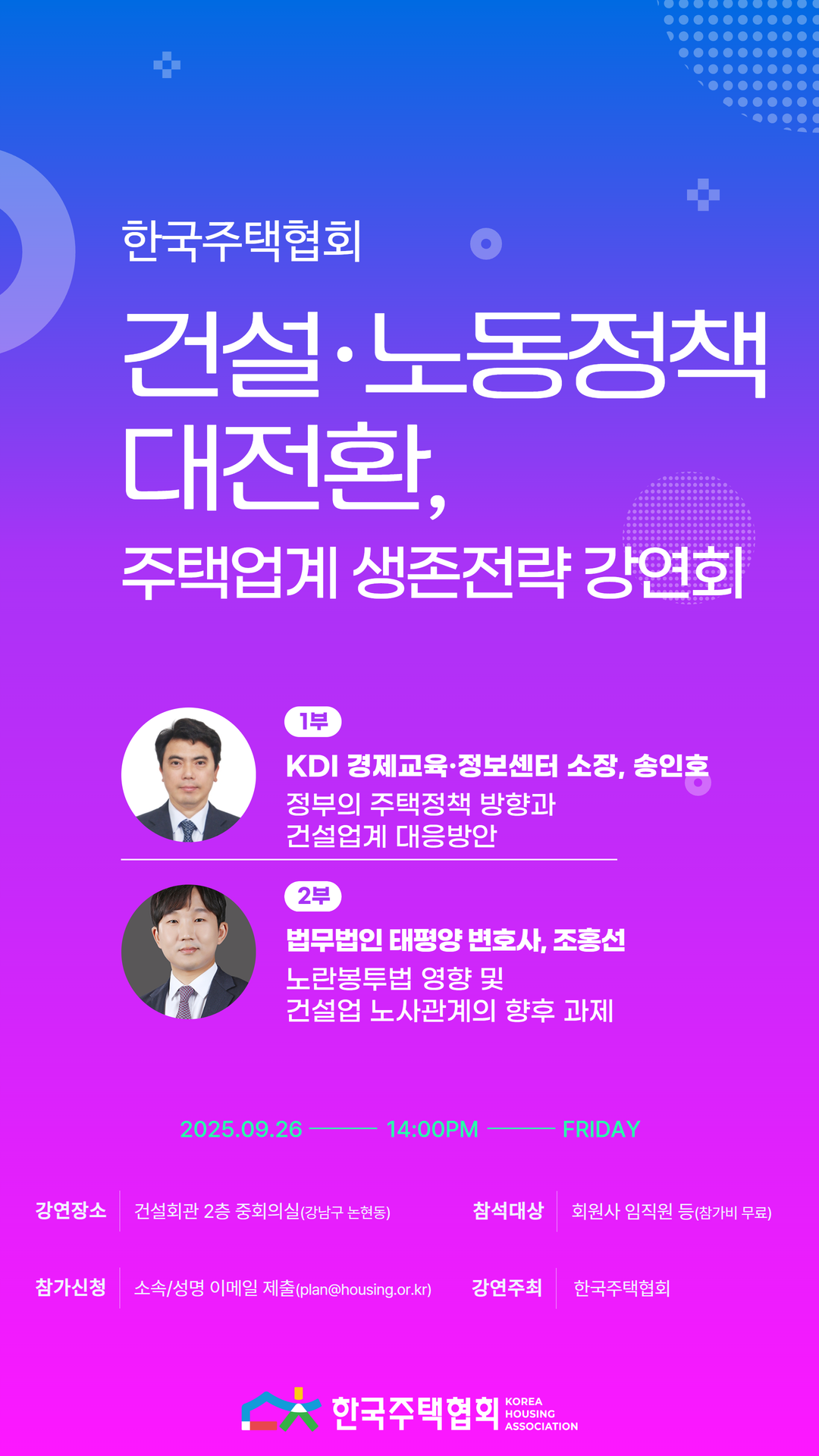 Çѱ¹°Ç¼³¿£Áö´Ï¾î¸µÇùȸ¿¡¼ ¾Ë·Áµå¸³´Ï´Ù.| Çѱ¹ÁÖÅÃÇùȸ,¡¸°Ç¼³¡¤³ëµ¿Á¤Ã¥ ´ëÀüȯ, ÁÖÅþ÷°è »ýÁ¸Àü·« °¿¬È¸¡¹°³ÃÖ ¾È³» |
