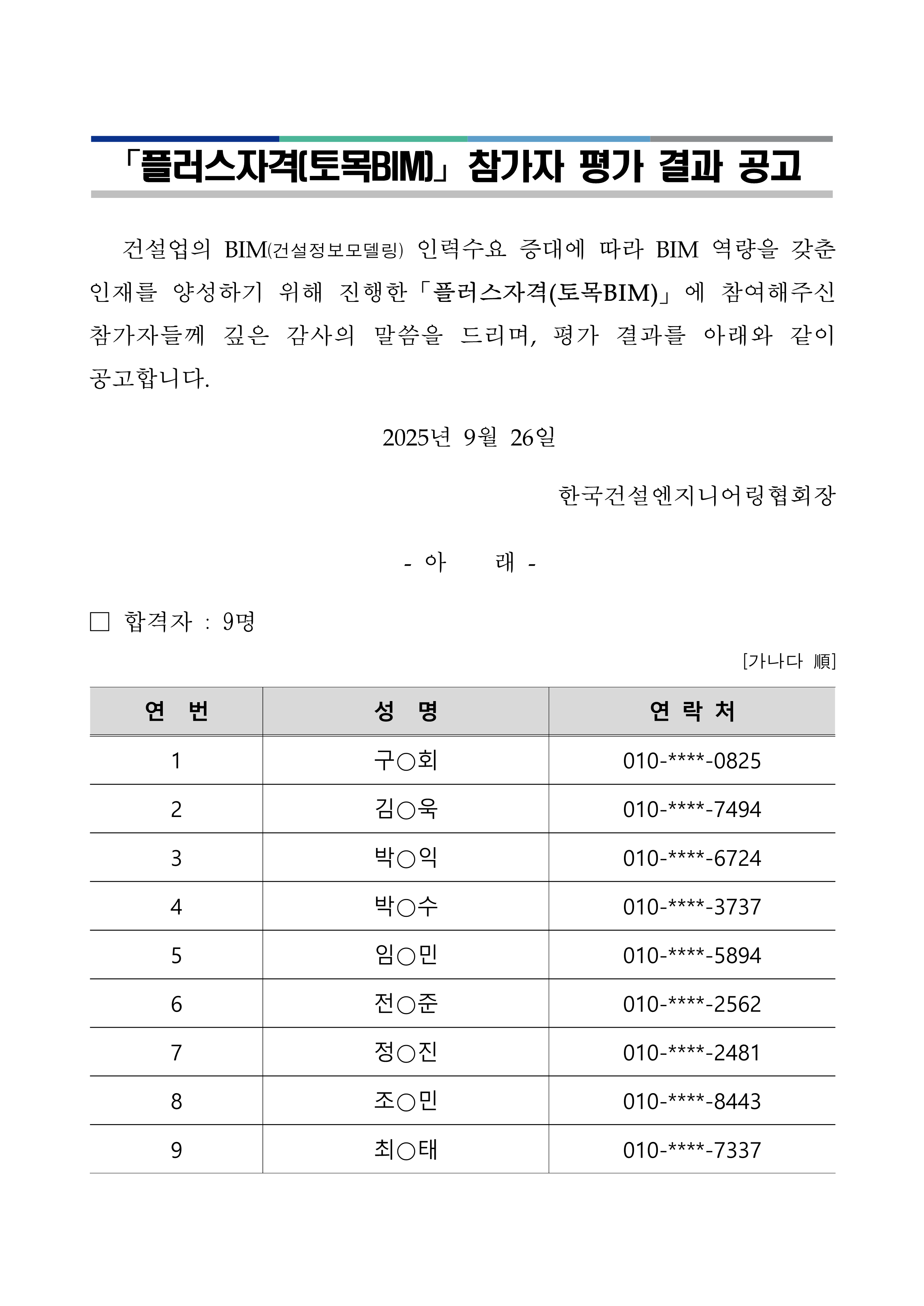 25³âµµ Ç÷¯½ºÀÚ°Ý(Åä¸ñBIM) Âü°¡ÀÚ Æò°¡ °á°ú °ø°í |