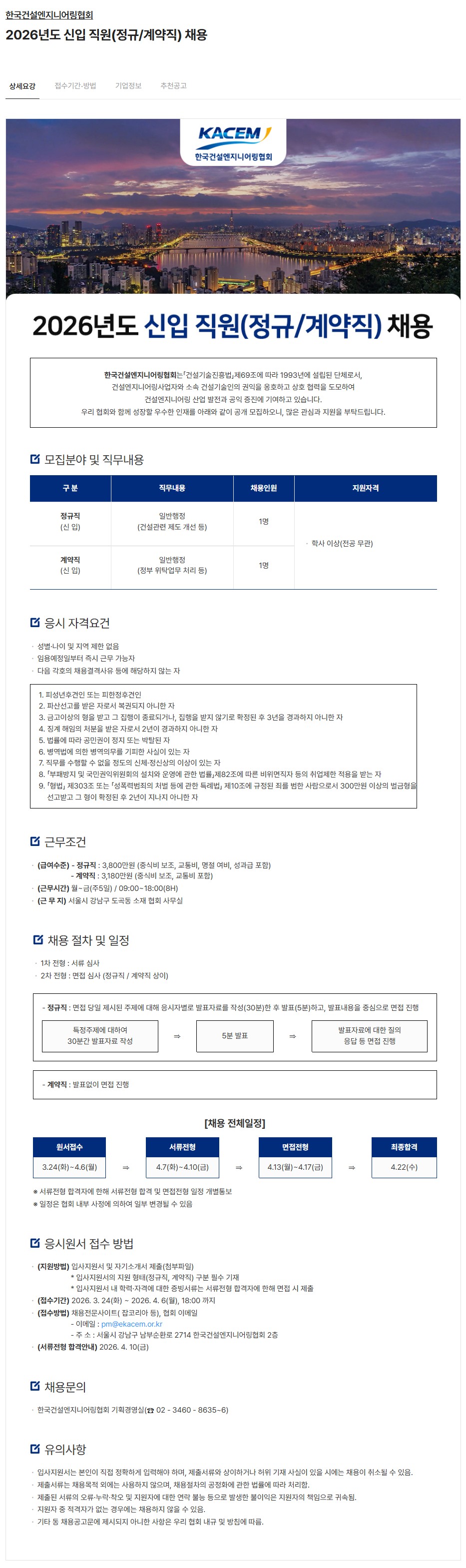 Çѱ¹°Ç¼³¿£Áö´Ï¾î¸µÇùȸ¿¡¼ ¾Ë·Áµå¸³´Ï´Ù.| 2026³âµµ Çùȸ Á÷¿ø ä¿ë °ø°í(½ÅÀÔ) |