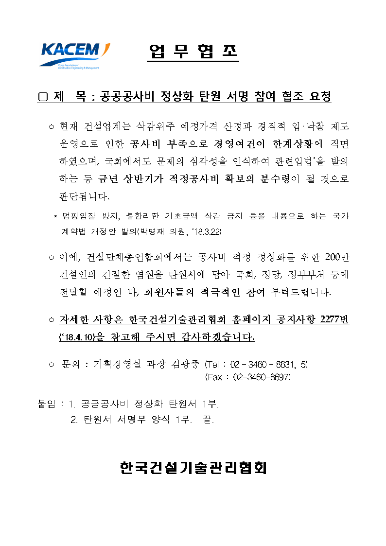 Çѱ¹°Ç¼³¿£Áö´Ï¾î¸µÇùȸ¿¡¼ ¾Ë·Áµå¸³´Ï´Ù.| °ø°ø°ø»çºñ Á¤»óÈ Åº¿ø ¼¸í Âü¿© ÇùÁ¶ ¿äû |