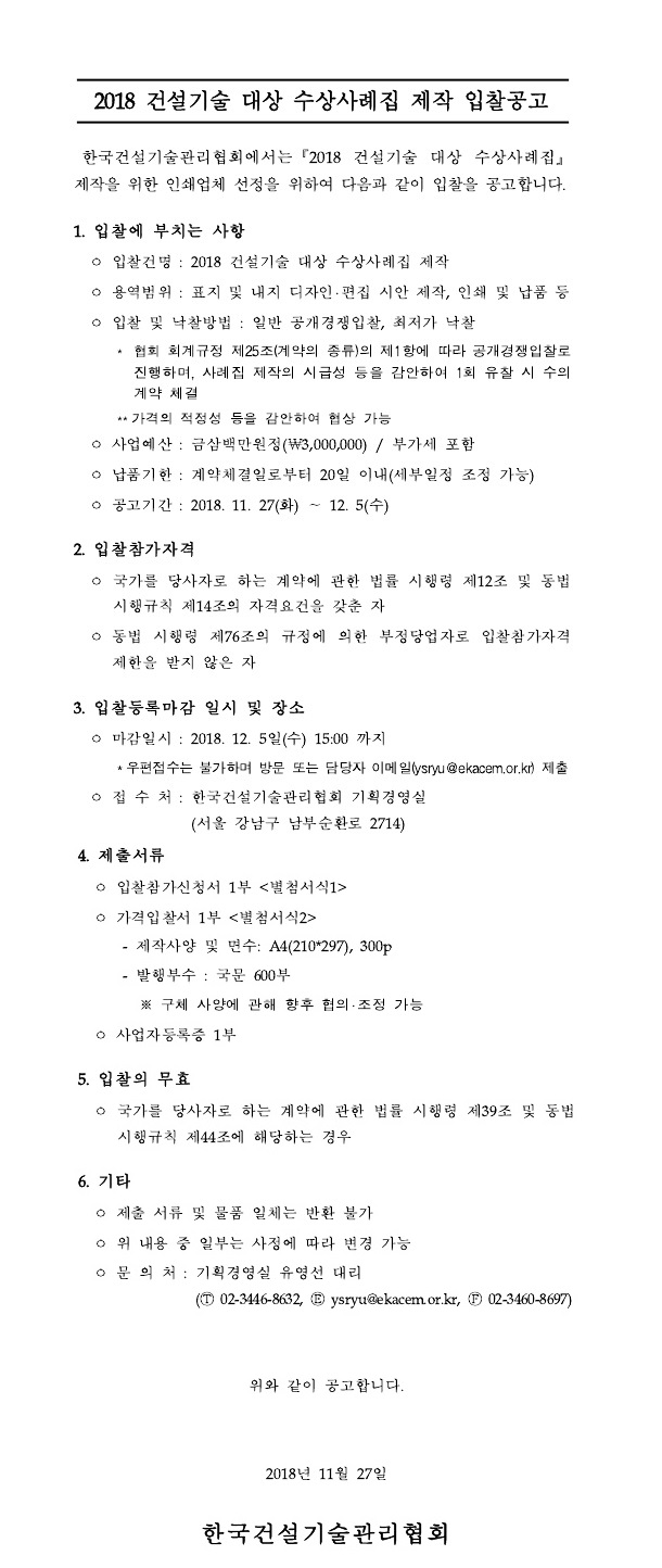 KACEM ȸº¸ Á¦ÀÛ¾÷ü ¼±Á¤ ÀÔÂû°ø°í |