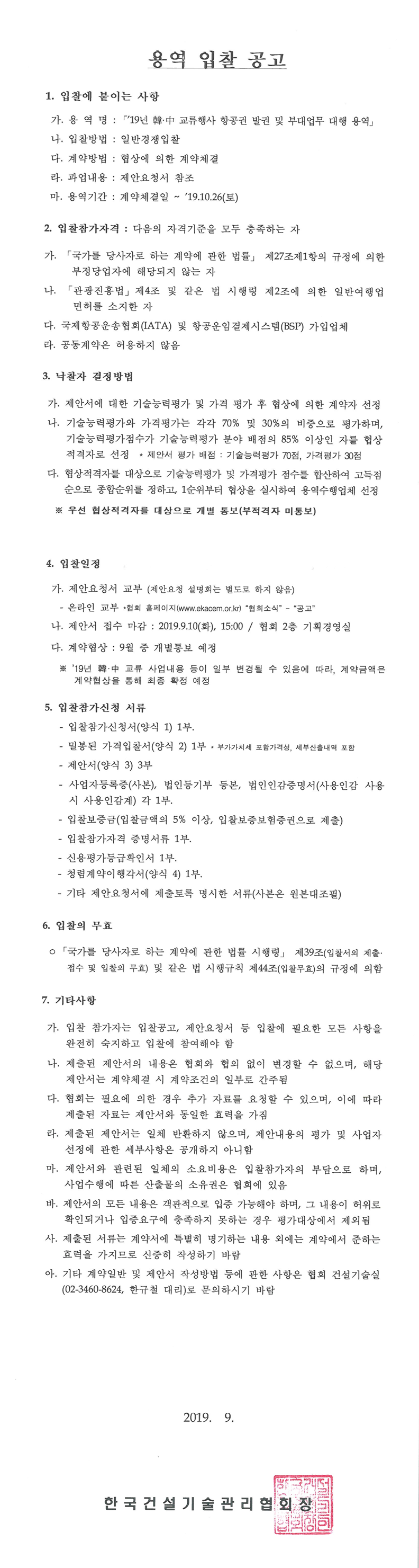 ¿ì¸®ÇùȸÀÇ ÀÔÂû °ø°í ¼Ò½ÄÀ» ¾Ë·Á µå¸³´Ï´Ù.| ¡¯19³â ùÛ¡¤ñé ±³·ùÇà»ç ¡¸Ç×°ø±Ç ¹ß±Ç ¹× ºÎ´ë¾÷¹« ´ëÇà ¿ë¿ª¡¹ ÀÔÂû°ø°í |