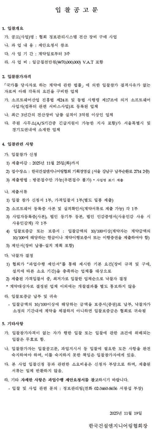 Çùȸ ¡¸Á¤º¸°ü¸®½Ã½ºÅÛ Àü»ê Àåºñ ±¸¸Å¡¹ ÀÔÂû°ø°í