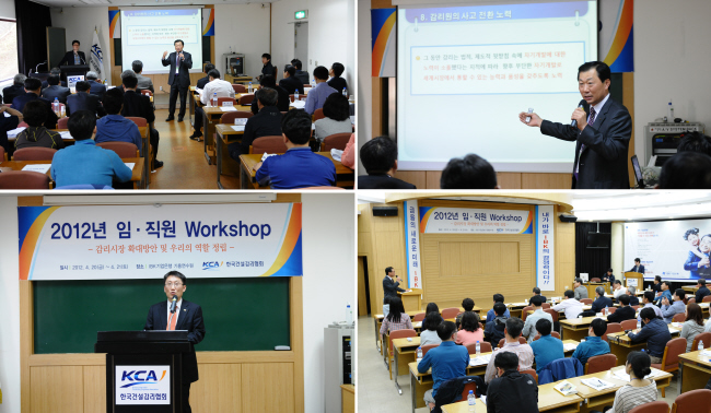- ¡°´Éµ¿ÀûÀÎ Çùȸ·Î °Åµì³ª±â À§ÇØ ¿ª·® °È¿¡ ¾ÕÀ弡± ¿ì¸®Çùȸ°¡ °¨¸® ÇØ¿ÜÁøÃâ Ȱ¼ºÈ, ȸ¿ø»ç¸¦ À§ÇÑ ¼ºñ½º ÁúÀû Á¦°í, ´Ù°¡°¥ ¼ö ÀÖ´Â ±³À°, ´Éµ¿ÀûÀÎ È«º¸¸¦ À§ÇØ ´Ù°¢ÀûÀÎ ¹æ¾È¸ð»ö¿¡ ³ª¼´Â µî °¨¸®¾÷°è ¹ßÀü¿¡ ÇÑÃþ ¿ª·®À» °ÈÇϰí ÀÖ´Ù. ¿ì¸®Çùȸ´Â Áö³ 4¿ù 20,21ÀÏ ¾çÀϰ£ °æ±âµµ ±âÈï¿¡ ¼ÒÀçÇÑ IBK±â¾÷ÀºÇà ¿¬¼ö¿ø¿¡¼ ÀÓ¤ýÁ÷¿ø 60¸íÀÌ Âü¼®ÇÑ °¡¿îµ¥ ¡®2012³âµµ ÀÓ¤ýÁ÷¿ø ¿öÅ©¼ó¡¯À» °³ÃÖÇß´Ù. À̳¯ ¿öÅ©¼ó¿¡¼´Â ´ëÇѰǼ³Çùȸ °Çؼº ½ÇÀåÀÌ °ÀǸ¦ ¸Ã¾Æ ¡®°Ç¼³»ê¾÷ À̹ÌÁö °³¼±¹æ¾È¡¯À̶ó´Â ÁÖÁ¦·Î Ư°À» °³ÃÖÇÏ¿´À¸¸ç, Çùȸ °¢ À§¿øÈ¸(À±¸®, ¹ýÁ¦¤ý±â¼ú, È«º¸¤ýÆíÁý, ±¹Á¦, ±³À°)º°·Î Çùȸ¹ßÀü¹æ¾È¿¡ ´ëÇÑ ºÐÀÓ ÅäÀǸ¦ ÁøÇàÇß´Ù. ±è¿¬Å ȸÀåÀº ¡°±¹³» °Ç¼³°æ±â ħü·Î ÀÎÇÑ ½ÃÀåÃà¼Ò¿Í Á¦µµ°³¼± ¹®Á¦ µî °¨¸®¾÷°èÀÇ Çö¾È»ç¾È¿¡ Àû±Ø ´ëóÇϱâ À§ÇØ ¹«¾ùº¸´Ùµµ Çùȸ ÀÓ¤ýÁ÷¿øµéÀÌ »õ·Î¿î ÀÚ¼¼¿Í ÀǽÄÀÇ ÀüȯÀ» °¡Á®¾ß ÇÑ´Ù.¡±¸ç ¡°À̹ø ¿öÅ©¼óÀº ÇöÀç ¾î·Á¿òÀ» °Þ°í ÀÖ´Â °¨¸®¾÷°è¿Í ÇùȸÀÇ ¹ßÀüÀ» À§ÇØ ÀÓ¤ýÁ÷¿øµéÀÇ ÁßÁö¸¦ ¸ðÀ¸±â À§ÇØ ¸¶·ÃµÈ ¸¸Å, ¿öÅ©¼ó¿¡¼ °³ÁøµÈ ÀǰߵéÀ» ¼ö·ÅÇÏ¿© ¾÷¹«¿¡ ¹Ý¿µµÉ ¼ö ÀÖµµ·Ï ÃÖ¼±ÀÇ ³ë·ÂÀ» ±â¿ïÀ̰ڴÙ.¡±°í °Á¶Çß´Ù. ÃÖ±Ù ¿ì¸®Çùȸ´Â Á¶Á÷°³ÆíÀ» ÅëÇØ Á¤ºÎÀÇ Á¤Ã¥°³¹ß¤ýÃßÁø¿¡ ¼±Á¦ÀûÀ¸·Î ´ëÀÀÇϱâ À§ÇÑ ¡®Á¤Ã¥¿¬±¸¡¯ ±â´É°ú ȸ¿ø»çÀÇ ÇØ¿Ü½ÃÀå ÁøÃâ È®´ë¸¦ À§ÇÑ ¡®±¹Á¦¾÷¹«¡¯ ±â´É ¹× ´ë¿Ü±³·ù Çù·Â¾÷¹« °È¿¡ ¹ÚÂ÷¸¦ °¡Çϰí ÀÖ´Â ÇÑÆí, ȸ¿ø»çÀÇ ¿ä±¸¿¡ ¸Â´Â Áö¿øÃ¼°è È®¸³°ú ¾÷¹«´É·ü Çâ»ó¿¡µµ Èû¾²°í ÀÖ´Ù. ¶ÇÇÑ È«º¸¾÷¹« °È¸¦ À§ÇØ ±âÁ¸ÀÇ ¡®È«º¸¡¯ ¾÷¹«¿¡ ¡®Àü»ê¡¯ ±â´ÉÀ» Ãß°¡ÇÏ¿© ¾ð·Ð±â°ü ¹× ȸ¿ø»ç¿¡ º¸´Ù ½Å¼ÓÇÏ°Ô °ü·Ã Á¤º¸¸¦ Àü´Þ, À¯±âÀûÀÎ ¼ÒÅëÀ» ÇÏ´Â µî ¹Ì·¡ Àü·«¿¡ ¸Â´Â ´Éµ¿ÀûÀÎ Çùȸ·Î °Åµì ž°íÀÚ ´Ù¾çÇÑ ³ë·ÂÀ» Çϰí ÀÖ´Ù. ¡Ø ÷ºÎ : 2012³âµµ ¿öÅ©¼ó °¢ À§¿øÈ¸º° ¹ßÇ¥ÀÚ·á |