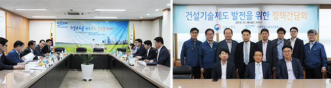 ¿ì¸® Çùȸ¿Í ±¹Åä±³ÅëºÎ°¡ Áö³ 6¿ù 28ÀÏ Çùȸ ´ëȸÀǽǿ¡¼ °Ç¼³±â¼ú Á¦µµ °³¼± ¹× ¾÷°èÀÇ ¹ßÀü¹æ¾È ¸¶·ÃÀ» À§ÇÑ Á¤·Ê Á¤Ã¥°£´ã ȸ¸¦ °³ÃÖÇß´Ù. À̹ø °£´ãȸ´Â Áö³ 5¿ù ȸÀÇ¿¡¼ Á¤Ã¥°£´ãȸ °³ÃÖ¸¦ Á¤·ÊÈÇϱâ·Î ÇÑ °Í¿¡ ´ëÇÑ ÈÄ¼Ó Á¶Ä¡·Î ¾öÁ¤Èñ ±â¼úÁ¤Ã¥°úÀå, ¹Ú¸íÁÖ ±â¼ú ±âÁذúÀå µî ±¹Åä±³ÅëºÎ °ü°èÀÚµé°ú ¿ì¸® Çùȸ ±èÁ¤È£ ȸÀå(´Ù»êÄÁ¼³ÅÏÆ® »çÀå), ¼Û¸í±â ºÎȸÀå(½ÅÈ¿£Áö´Ï¾î¸µ ´ëÇ¥) µî Çùȸ ÀÓÁ÷¿øµéÀÌ Âü¼®ÇÑ °¡¿îµ¥ ÁøÇàµÆ´Ù. À̳¯ ȸÀÇ¿¡¼ ¿ì¸® Çùȸ´Â °Ç¼³±â¼ú¿ë¿ª Á¾Çսɻ糫ÂûÁ¦ÀÇ ÃÖÀúÀÔÂû°¡ »óÇâ Á¶Á¤, Á¦1Á¾ ȯ°æ¿µÇâÆò°¡¾÷ µî·Ï ¹× ȯ°æ¿µÇâÆò°¡ PQ Æò°¡ ½Ã ȯ°æ¿µÇâÆò°¡»ç¸¦ Àǹ« °í¿ë¡¤¹èÄ¡Çϵµ·Ï ÇÑ È¯°æ¿µÇâÆò°¡Á¦µµÀÇ °³¼± µîÀ» °ÇÀÇÇß´Ù. ÀÌ¿¡ ´ëÇØ ±¹Åä±³ÅëºÎ´Â ÇâÈÄ Á¾Çսɻ糫ÂûÁ¦ ¹ßÁÖ»ç·Ê µîÀ» Á¾ÇÕÀûÀ¸·Î °ËÅäÇÏ°í ¹ßÁÖó¿ÍÀÇ ÇùÀÇ µîÀ» ÅëÇØ °³¼±¹æ¾ÈÀ» ¸¶·Ã Çϱâ·Î ÇßÀ¸¸ç, ȯ°æ¿µÇâÆò°¡Á¦µµ °³¼±°ú °ü·ÃÇØ¼´Â ¾÷°èÀÇ ÀǰßÀÌ ¹Ý¿µµÉ ¼ö ÀÖµµ·Ï Àû±ØÀûÀÎ Áö¿øÀ» ¾Æ³¢Áö ¾Ê°Ú´Ù°í ¹àÇû´Ù. À̿ܿ¡µµ °Ç¼³±â¼ú¿ë¿ª ´ë°¡ Çö½ÇÈ µî ¿À·£ ÀïÁ¡»çÇ׿¡ ´ëÇÑ ÀÇ°ß ±³È¯ÀÌ ÀÌ·ïÁ³À¸¸ç, Ãß°¡ ³íÀÇ´Â ÃßÈÄ Á¤·Ê Á¤Ã¥°£´ãȸ¿¡¼ ÁøÇàÇÒ ¿¹Á¤ÀÌ´Ù. |